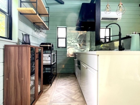 バレルサウナ&ワイン樽風呂 かわいらしいフォルムのバレルサウナと、デッキに設置したワイン樽の水風呂。人の目が届かないプライベート空間で、極上のととのい体験を。 テールは、フランス語で「大地」を表すことば。 北欧産のバレルサウナと、ワイン樽の水風呂を備え、お好きな時間に、お好きなだけサウナをお楽しみいただけます。 館内には広々としたリビングダイニングキッチンとバーカウンター。充実した調理設備があるので、ご自身でお好きなものを調理できます。オプションで、出張シェフのディナーもお楽しみいただけます。